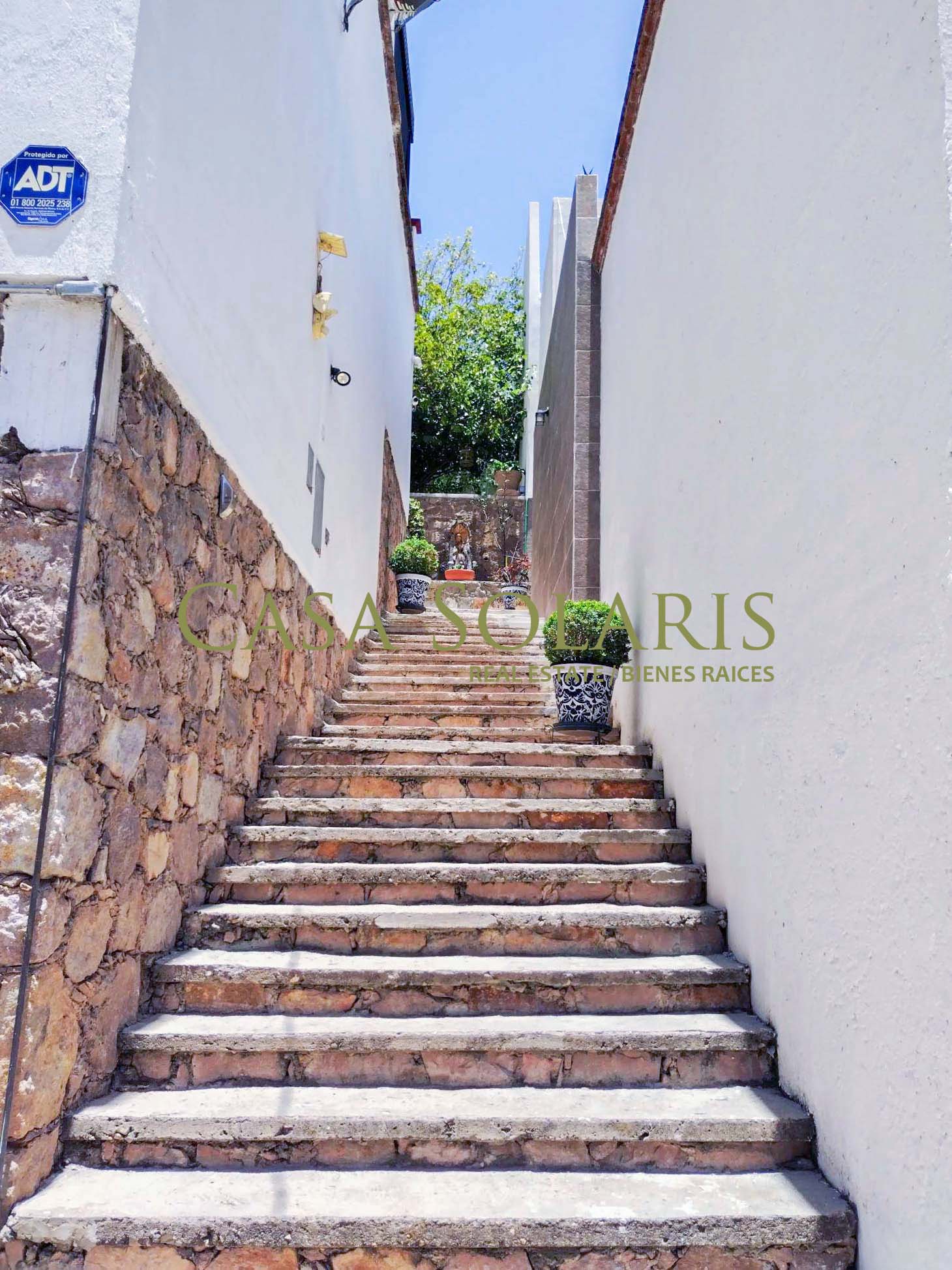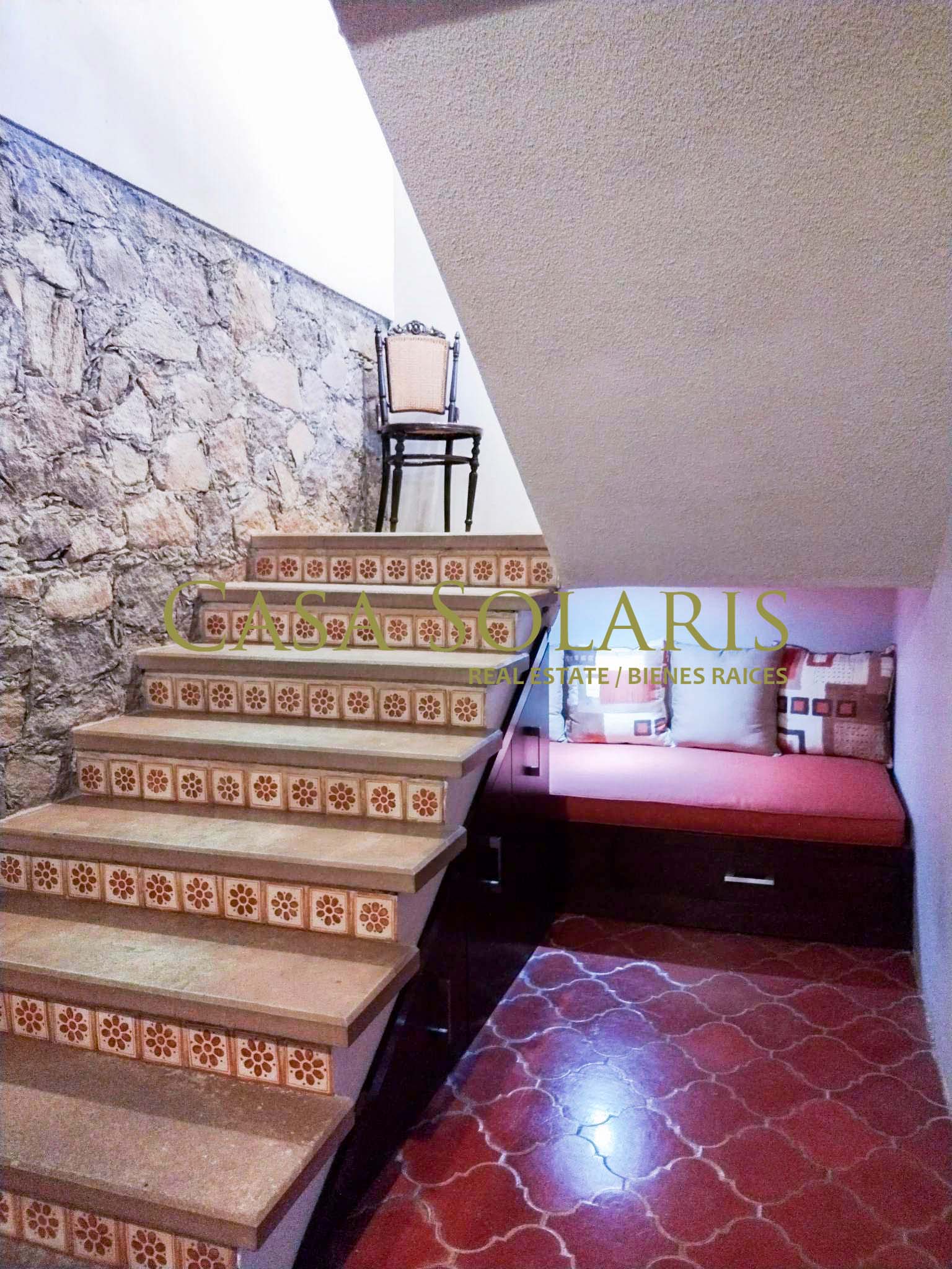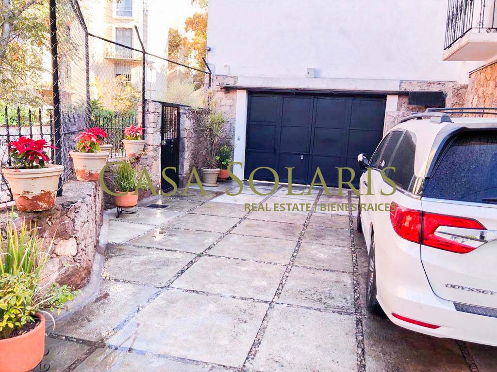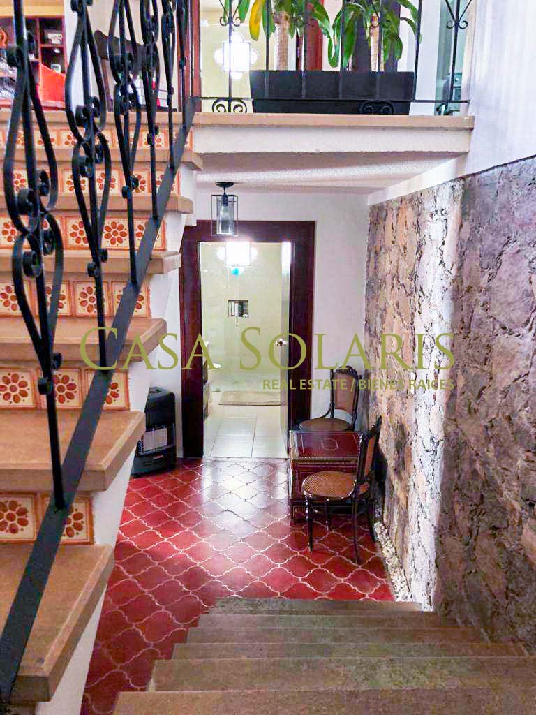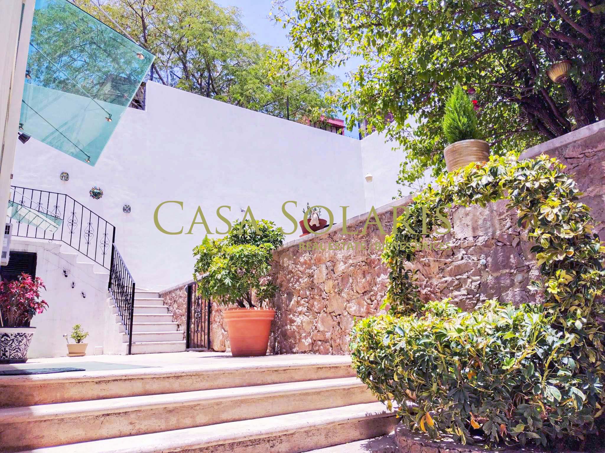 Extraordinary furnished property in a traditional architectural style located a few meters from the emblematic Paseo de la Presa Street. Built on a 302 sq meters lot with 200 sq meters of construction, built in two levels, this property was extensively remodeled in 2016, preserving its floors and some original architectural element., It has an access through the garage for three cars and another through the main Street. On the first level there is a small entertainment room and kitchen with a granite bar, intelligent storage spaces from floor to ceiling, equipped with stove, refrigerator, laundry center, microwave. Full bathroom with excellent decoration details, warm lighting and storage spaces in fine wood, mesquite living room with built-in bookcase, dining room for six, both spaces with balcony, On the ground floor there is a landing with a blacksmith and wood railing, steps with talavera and an apparent stone wall, under the stairs is a rest and storage area, very spacious bedrooms with closet, the first with two double beds, and the second bedroom with a double bed, both with balcony. The patio preserves a white mulberry tree which provides excellent shade and a very pleasant environment on sunny days. This property offers you pleasant spaces and a beautiful view of the surrounding mountains and Cerro de la Bufa from its rooftop, which has a pergola with a fan, a wine cellar, as well as a very spacious terrace with potted fruit trees, and an entertainment area with an electric treadmill and a complete bathroom, this space can be adapted as a third bedroom or guest room. The house has intelligent technology and first-class equipment such as an electric garage, solar panels, exterior movement lamps, 5 exterior NEST cameras, interior lamps with cell phone control, on demand water heaters, BOSE home theater, two Samsung televisions 60" and 48" and six fans. All the windows have blinds, and Blackout curtains in the bedrooms. The property is located in one of the best areas of Guanajuato, ten minutes from Embajadoras market and fifteen minutes from the Union Garden, immediate access to Boulevard Diego Rivera and fast exit from the city. Close to the bus stop, restaurants, self-service stores, butchers, greengrocers, pharmacy, schools, Florencio Antillón park and Presa de la Olla reservoir.