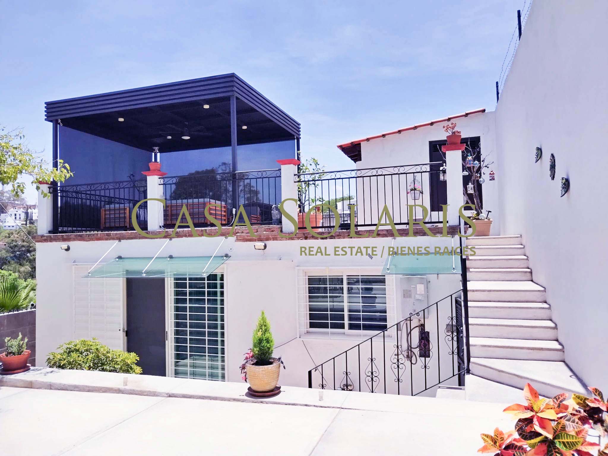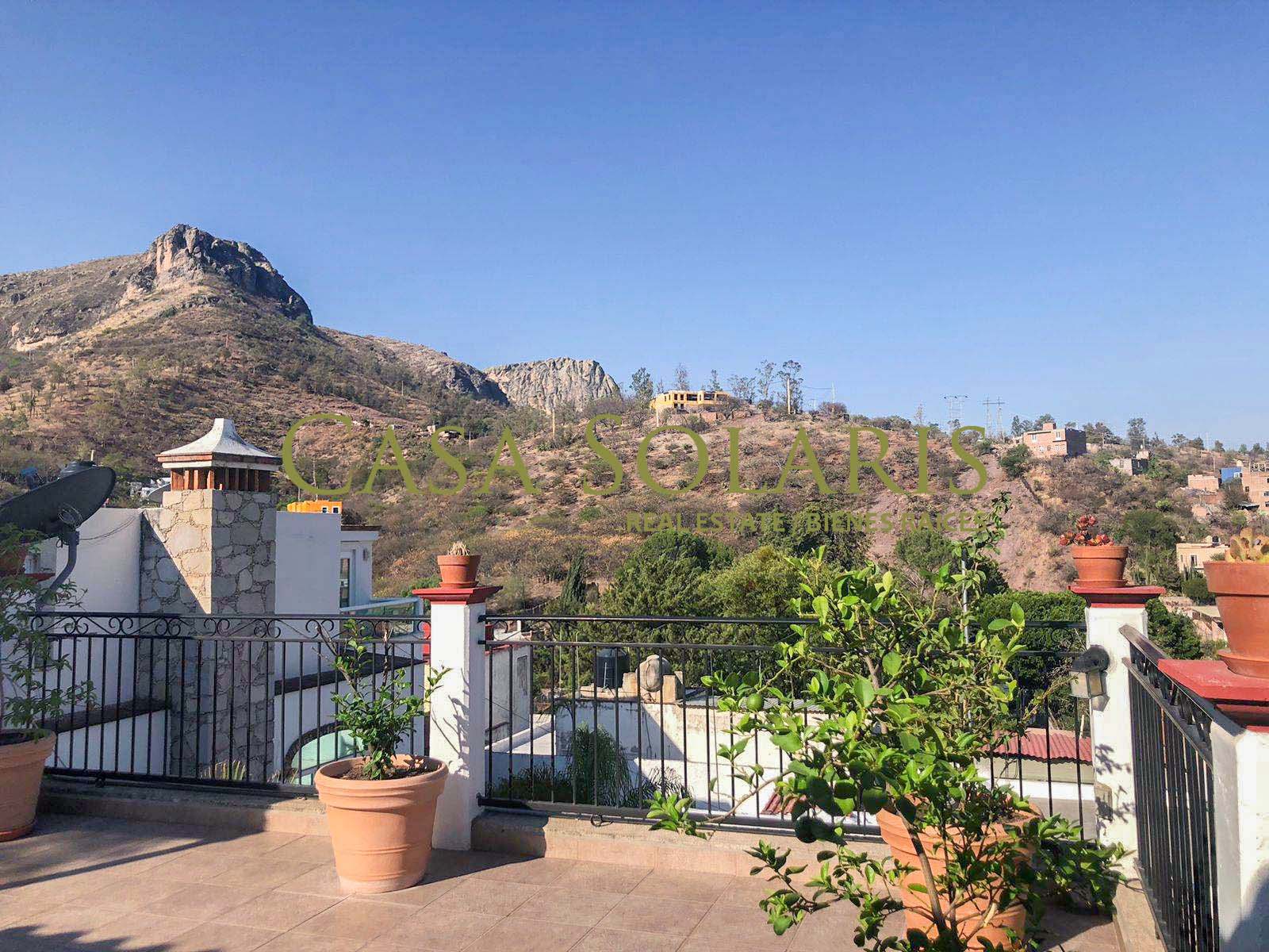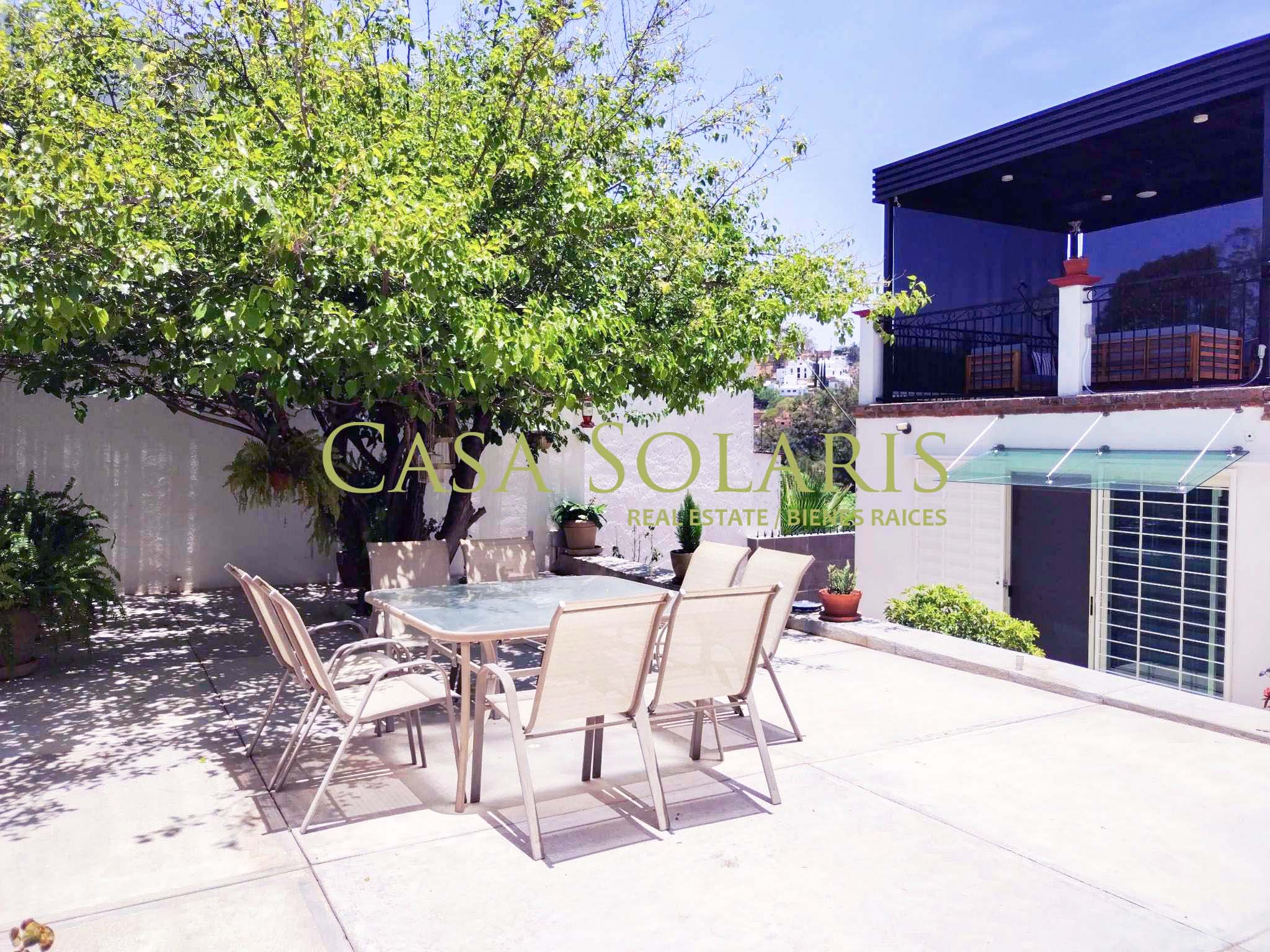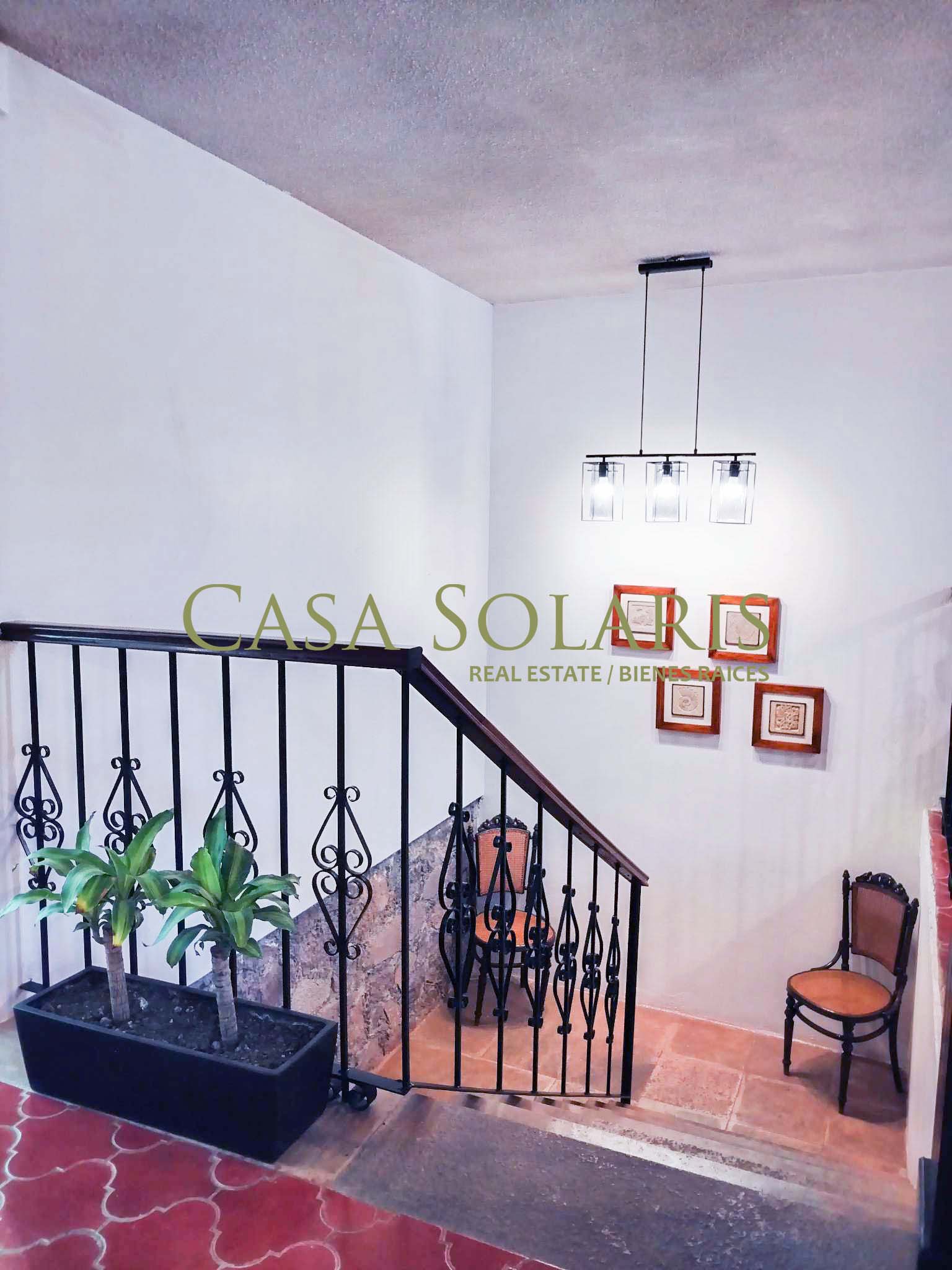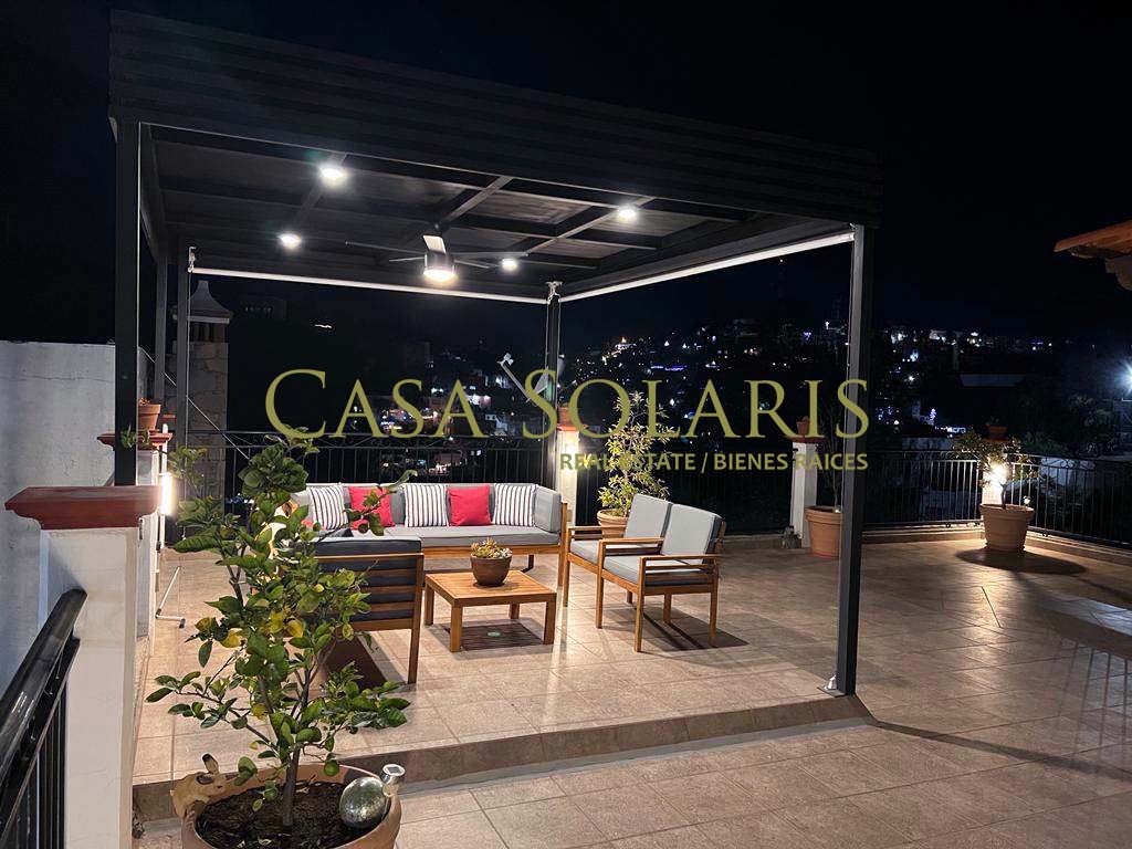 Extraordinary furnished property in a traditional architectural style located a few meters from the emblematic Paseo de la Presa Street. Built on a 302 sq meters lot with 200 sq meters of construction, built in two levels, this property was extensively remodeled in 2016, preserving its floors and some original architectural element., It has an access through the garage for three cars and another through the main Street. On the first level there is a small entertainment room and kitchen with a granite bar, intelligent storage spaces from floor to ceiling, equipped with stove, refrigerator, laundry center, microwave. Full bathroom with excellent decoration details, warm lighting and storage spaces in fine wood, mesquite living room with built-in bookcase, dining room for six, both spaces with balcony, On the ground floor there is a landing with a blacksmith and wood railing, steps with talavera and an apparent stone wall, under the stairs is a rest and storage area, very spacious bedrooms with closet, the first with two double beds, and the second bedroom with a double bed, both with balcony. The patio preserves a white mulberry tree which provides excellent shade and a very pleasant environment on sunny days. This property offers you pleasant spaces and a beautiful view of the surrounding mountains and Cerro de la Bufa from its rooftop, which has a pergola with a fan, a wine cellar, as well as a very spacious terrace with potted fruit trees, and an entertainment area with an electric treadmill and a complete bathroom, this space can be adapted as a third bedroom or guest room. The house has intelligent technology and first-class equipment such as an electric garage, solar panels, exterior movement lamps, 5 exterior NEST cameras, interior lamps with cell phone control, on demand water heaters, BOSE home theater, two Samsung televisions 60" and 48" and six fans. All the windows have blinds, and Blackout curtains in the bedrooms. The property is located in one of the best areas of Guanajuato, ten minutes from Embajadoras market and fifteen minutes from the Union Garden, immediate access to Boulevard Diego Rivera and fast exit from the city. Close to the bus stop, restaurants, self-service stores, butchers, greengrocers, pharmacy, schools, Florencio Antillón park and Presa de la Olla reservoir.