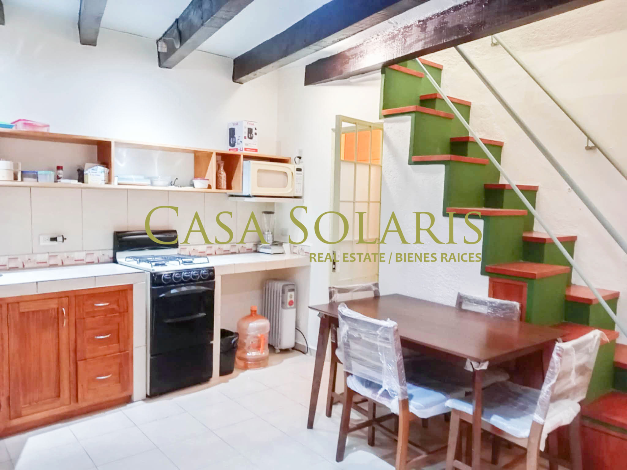 Furnished and equipped apartment located in the downtown area in the Perros Muertos alley, a few steps from Plaza de Mexiamora, the property is built on three floors, on the first floor is the kitchen, with dining room, armchair and a full bathroom, second floor bedroom with closet, balcony and full bathroom, third floor laundry area and terrace, its location is excellent since it is close to all the services to live comfortably, restaurants, cafes, grocery stores, butchers, bus stops, theaters, squares, union garden.