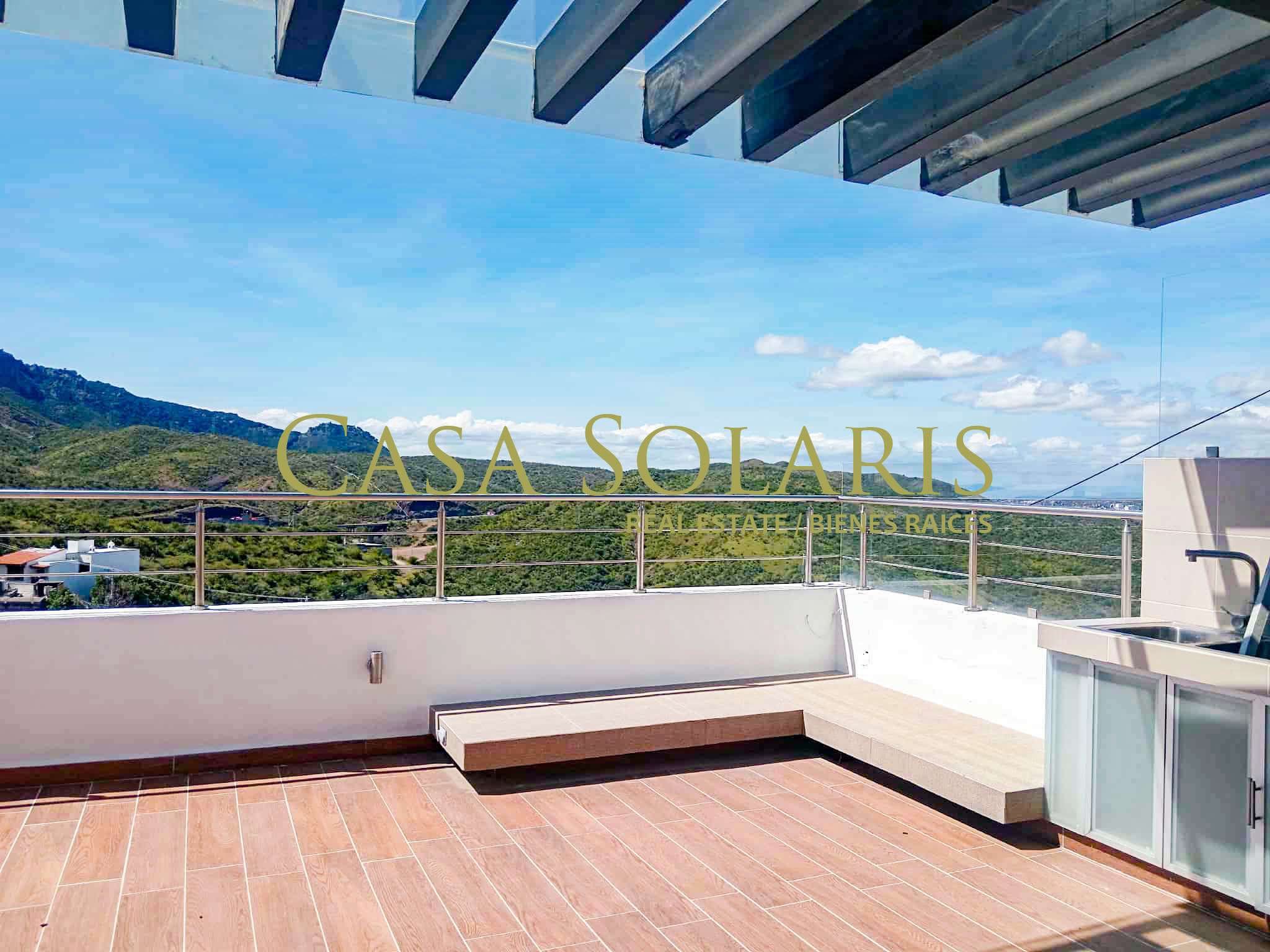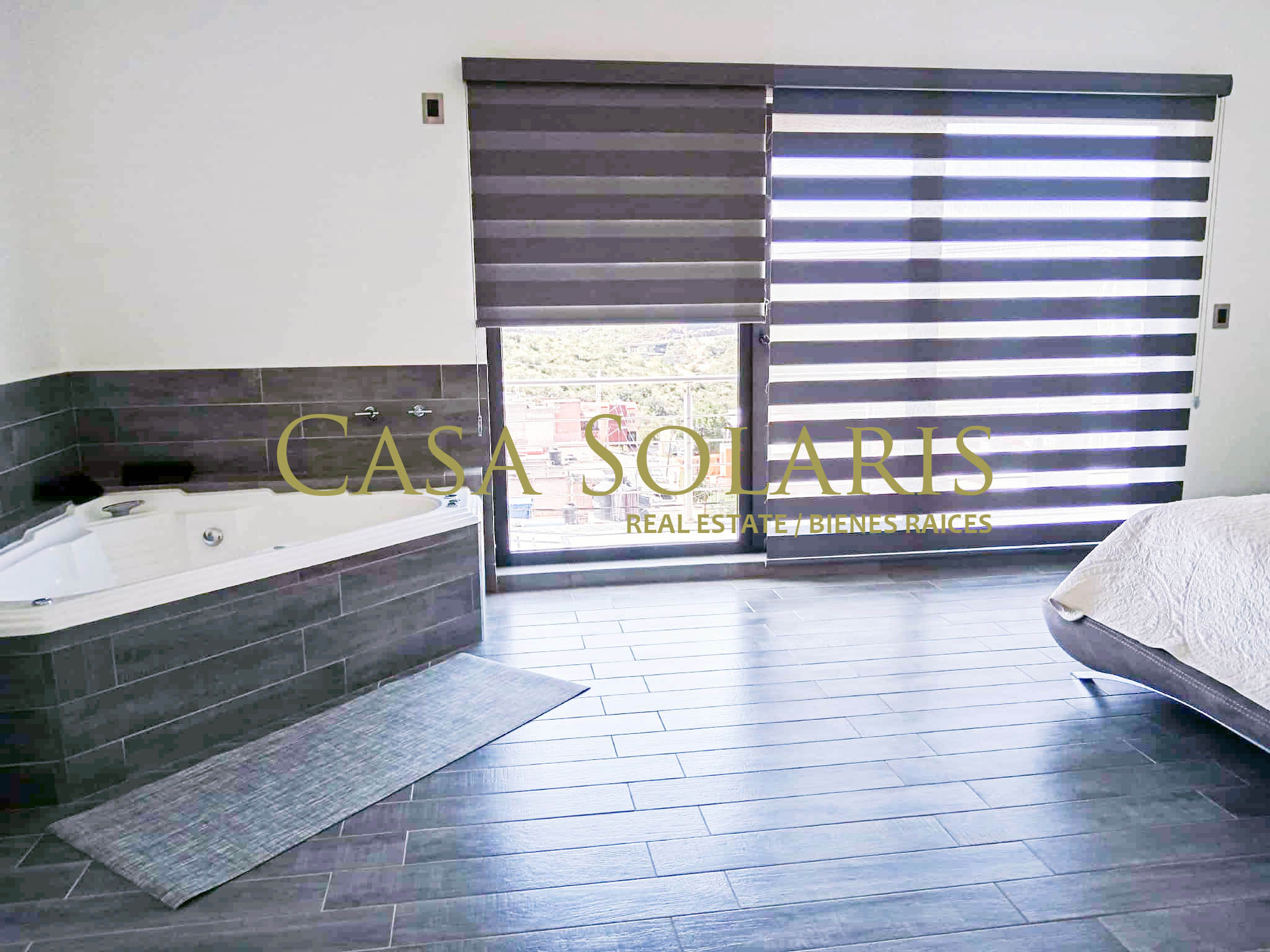Ubicada en una zona segura, privada y con excelentes vistas, esta casa habitación amueblada y completamente equipada ofrece comodidad, funcionalidad y estilo en cada uno de sus espacios. La propiedad, construida en varios niveles, cuenta con un garaje cubierto para dos autos y un recibidor acogedor que da la bienvenida a una cocina integral moderna, equipada con isla, refrigerador, estufa y enfriador de vinos. Adyacente se encuentra el cuarto de servicio con área de lavado. El comedor ofrece una vista panorámica impresionante, mientras que la sala destaca por sus espacios amplios y confortables, ideales para la convivencia familiar o social. En la planta alta, una terraza con área de BBQ invita a disfrutar de reuniones al aire libre con una vista espectacular hacia La Bufa. La planta baja alberga tres habitaciones, incluyendo una recámara principal con jacuzzi, vestidor tipo walk-in closet y acceso a terrazas con abundante luz natural. El nivel inferior completa la experiencia con un sauna privado, pensado para el descanso y bienestar. Esta propiedad es ideal para una familia o profesionistas que buscan vivir en un entorno tranquilo, elegante y con todas las comodidades modernas.