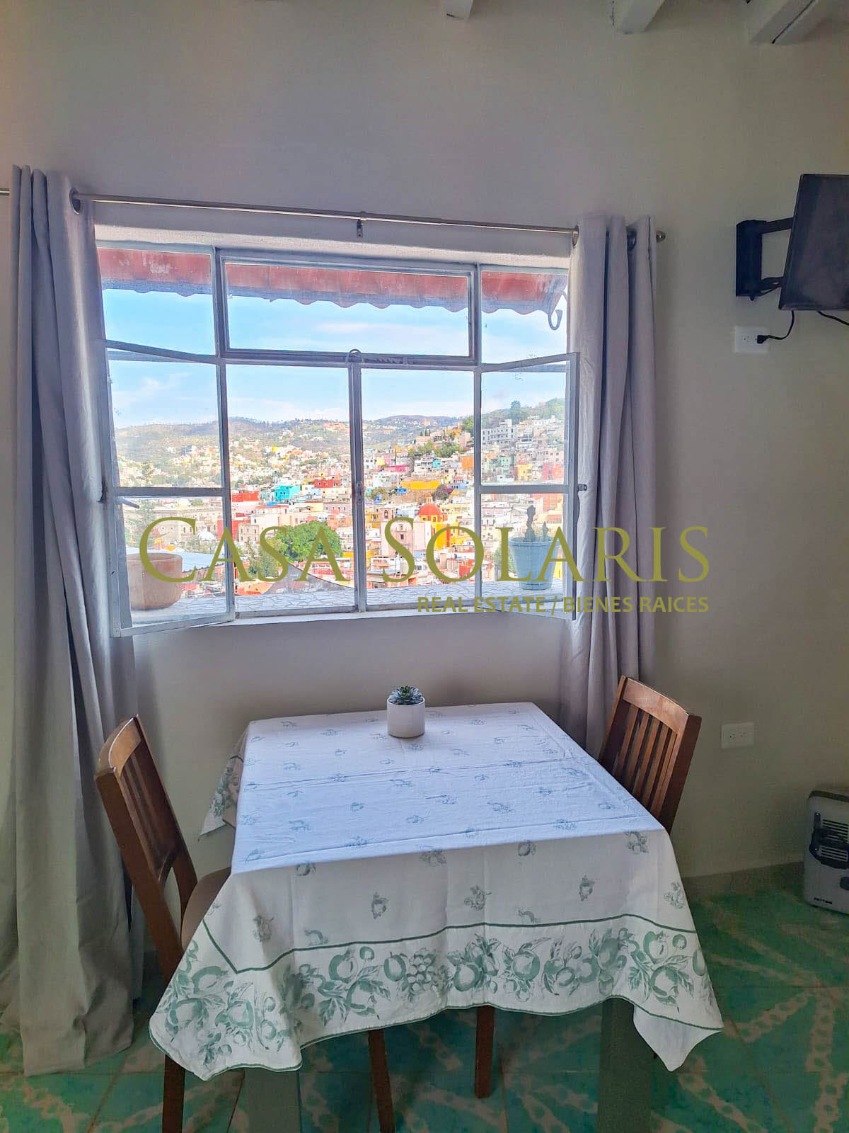 Estudio con terraza y hermosa vista a la ciudad, disfruta de una estancia cómoda y práctica en este estudio en planta alta, ideal para una persona o pareja, cuenta con una vista encantadora de la ciudad de Guanajuato que podrás disfrutar desde su terraza. Ubicado en un callejón privado a solo 5 minutos caminando del emblemático Callejón del Beso, el Departamento Playa cuenta con: Cama matrimonial, cocina equipada con refrigerador, parrilla de inducción, electrodomésticos, baño completo con regadera, terraza privada con lavadora y una hermosa vista, perfecta para relajarse o disfrutar del atardecer. El acceso es a través de un patio compartido con los demás departamentos de la propiedad, en un ambiente tranquilo y seguro. Importante: la propiedad no cuenta con estacionamiento propio. Incluye agua, luz e internet.