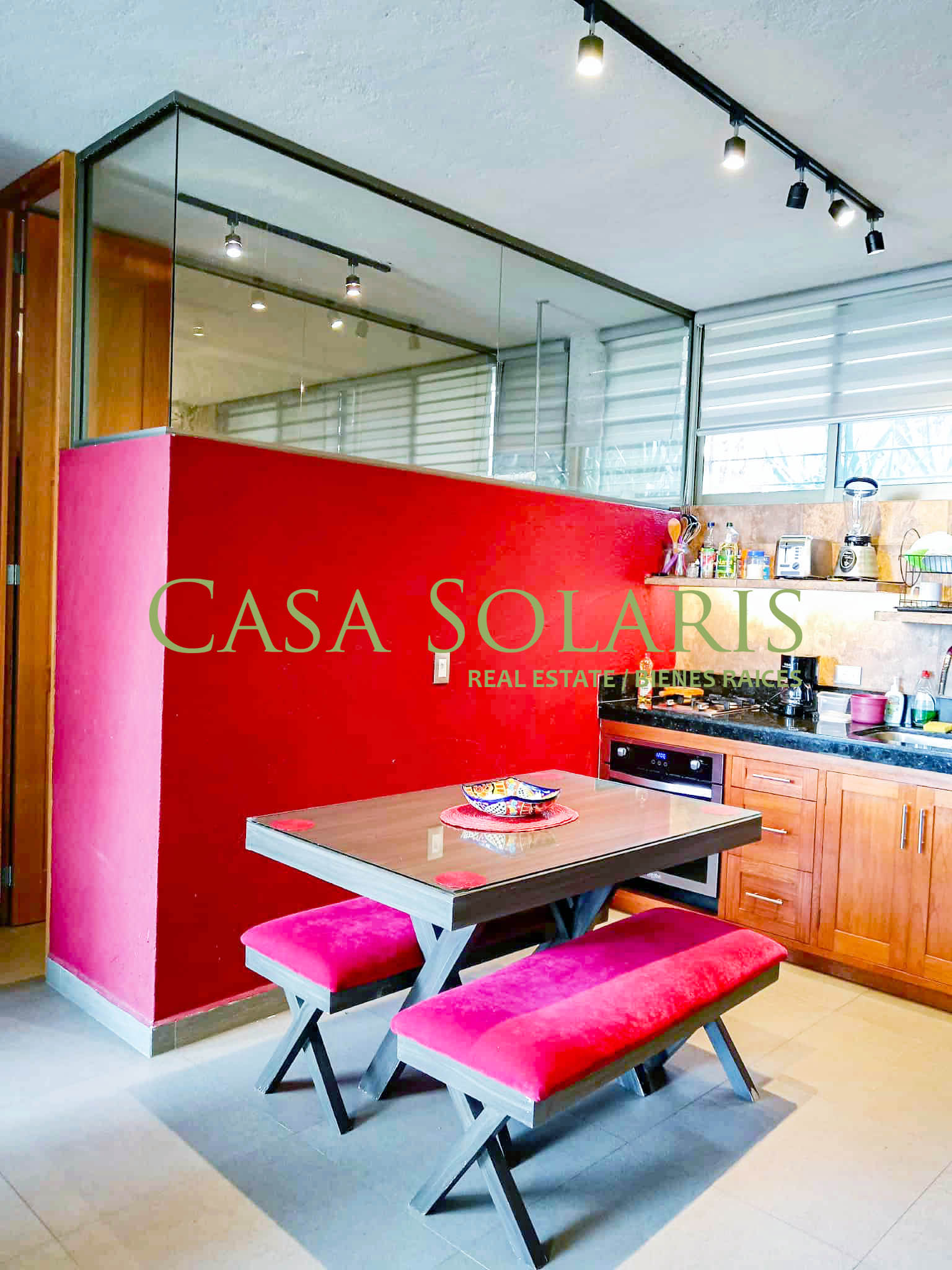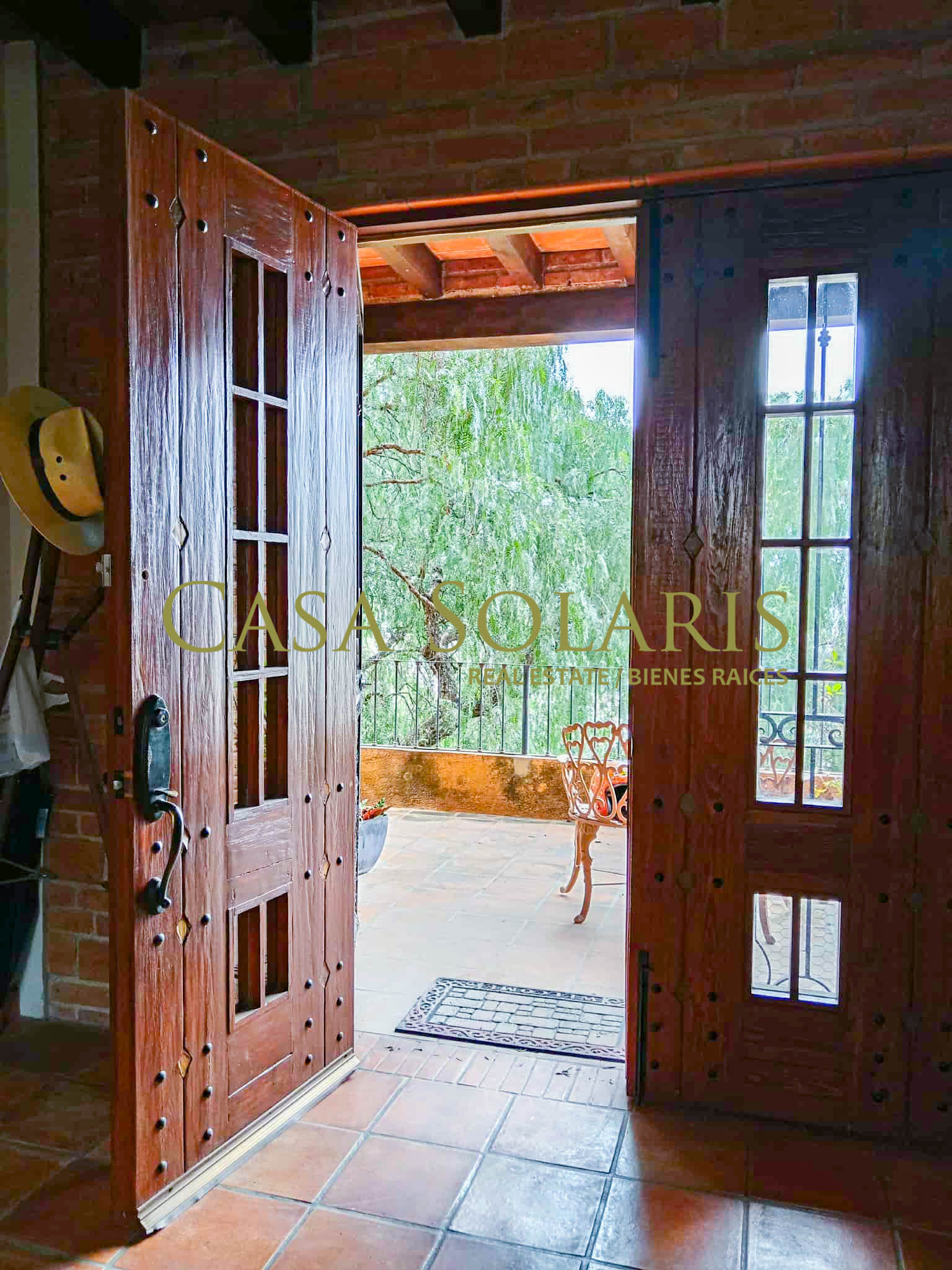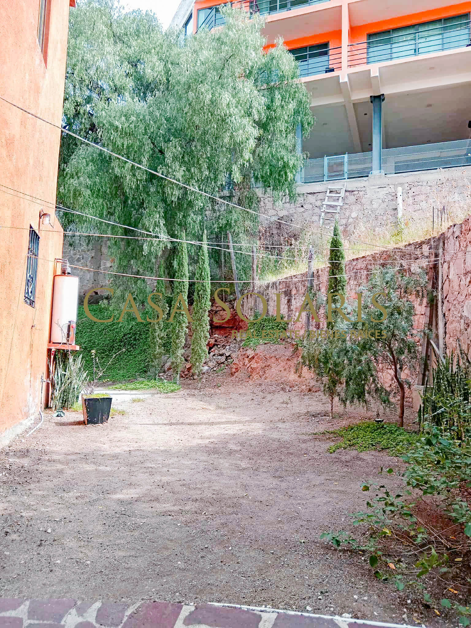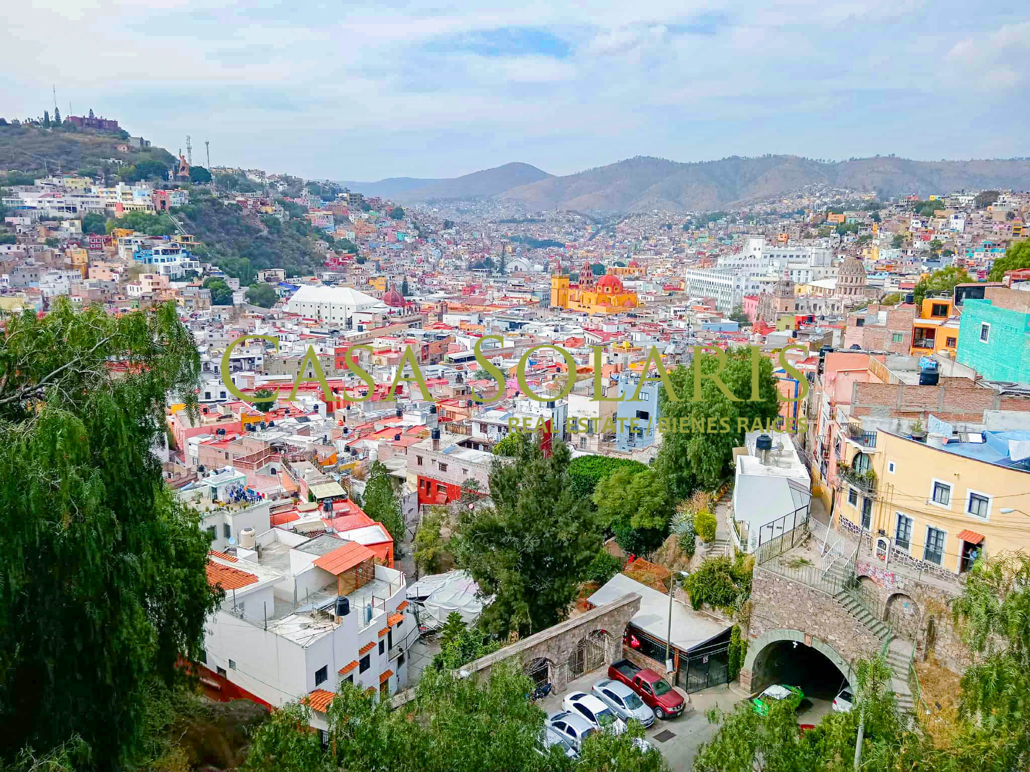 Oportunidad de residencia amueblada y equipada, en venta ubicada en una parte alta donde se aprecia de forma increíble una vista del Centro de la ciudad de Guanajuato, con sus edificios emblemáticos: teatro Juárez, La Basílica, la Universidad, el mercado Hidalgo, el monumento al Pípila. Se ubica arriba del túnel noreste y para llegar a ella se disfruta el recorrido de un jardín con mucha vegetación y árboles. Cuenta con dos propiedades en el terreno, una casa y un departamento independiente. La casa con dos terrazas exteriores con vistas fabulosas tanto de día como de noche. Detalles de construcción la hacen muy especial como amplias bóvedas en una recámara y otra hermosa bóveda de cañón corrido que cubre el espacio de cocina y comedor, acabados rústicos, azulejo de talavera en los baños, y una bellísima escalera con piso de madera que conecta los pisos. Tiene una amplia cocina con mucha luz. Cuenta con dos recámaras en la primera planta, baño con centro de lavado, baño completo, terraza al frente y amplio jardín en la parte trasera. Se sube a la segunda planta donde se encuentra la alargada cocina para deleite de los que les agrada preparar comida, el comedor, un baño, La tercera planta es una terraza, donde se puede construir un departamento. El departamento se encuentra en la parte inferior de la casa, en una sola planta, con dos recámaras, cocina, sala y comedor, un baño y medio. Muy funcional, cómodo y equipado para tener una estadía muy confortable. La propiedad se emplea como negocio de bed&breakfast, por lo que también se puede seguir rentando con una buena ganancia, y tiene un historial muy rentable. Una gran oportunidad por su cercanía a la parte nuclear de la zona centro y por el estilo arquitectónico colonial moderna y la espectacular vista panorámica.