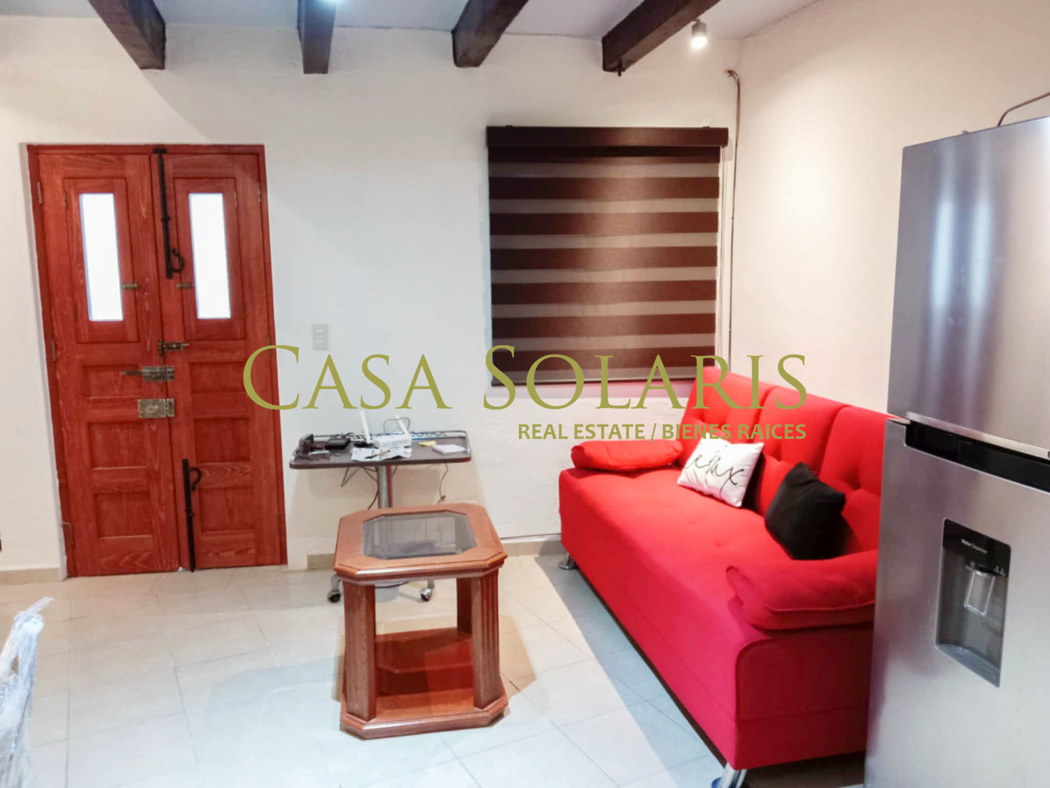 Departamento amueblado y equipado ubicado en zona centro en el callejón de Perros Muertos, a unos pasos de plaza de Mexiamora, la propiedad se encuentra edificada en tres plantas, en la primer planta se encuentra la cocina, con comedor, sillón y un baño completo, segunda planta recámara con closet, balcón y baño completo, tercer planta área de lavado y terraza, su ubicación es excelente ya que se encuentra cerca de todos los servicios para vivir cómodamente, restaurantes, cafeterías, verdulerías, carnicería, para de autobús, teatros, plazas, jardín unión.