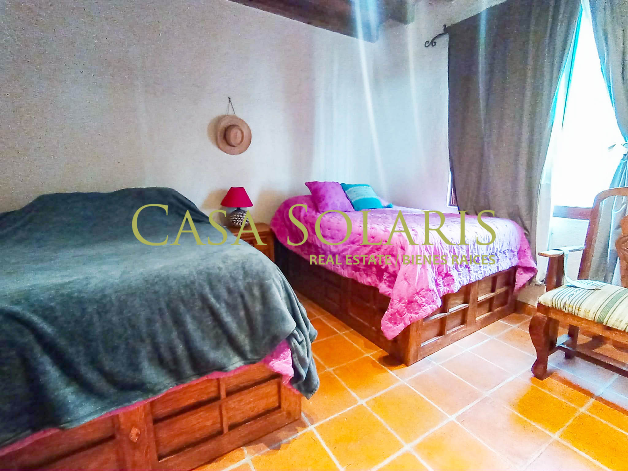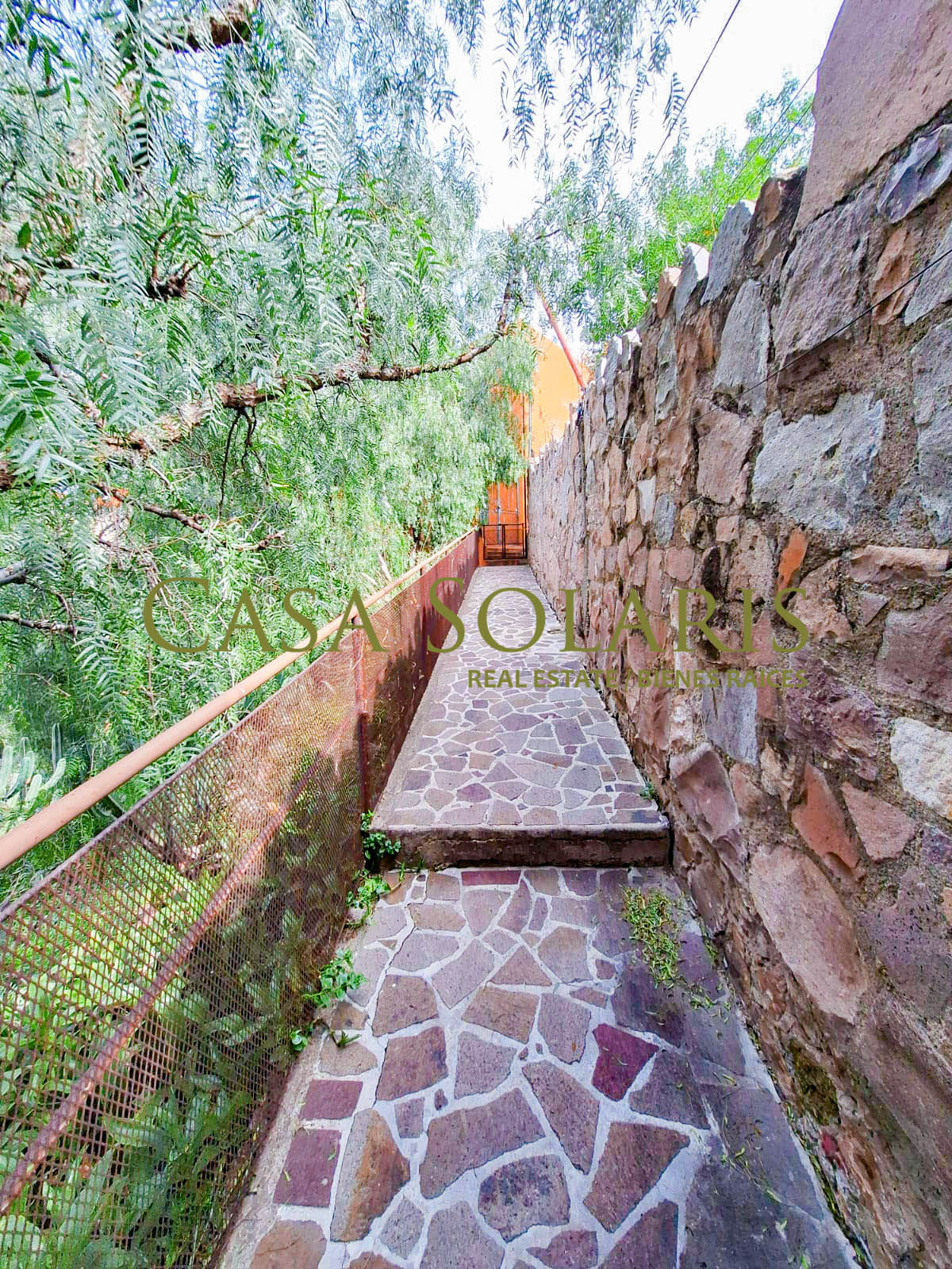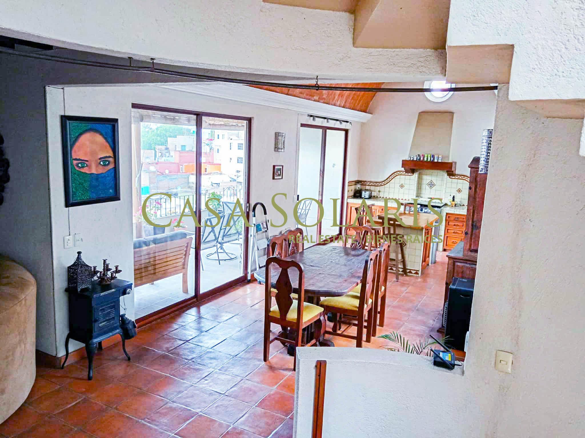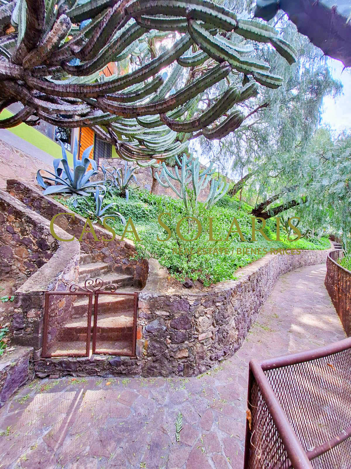 Oportunidad de residencia amueblada y equipada, en venta ubicada en una parte alta donde se aprecia de forma increíble una vista del Centro de la ciudad de Guanajuato, con sus edificios emblemáticos: teatro Juárez, La Basílica, la Universidad, el mercado Hidalgo, el monumento al Pípila. Se ubica arriba del túnel noreste y para llegar a ella se disfruta el recorrido de un jardín con mucha vegetación y árboles. Cuenta con dos propiedades en el terreno, una casa y un departamento independiente. La casa con dos terrazas exteriores con vistas fabulosas tanto de día como de noche. Detalles de construcción la hacen muy especial como amplias bóvedas en una recámara y otra hermosa bóveda de cañón corrido que cubre el espacio de cocina y comedor, acabados rústicos, azulejo de talavera en los baños, y una bellísima escalera con piso de madera que conecta los pisos. Tiene una amplia cocina con mucha luz. Cuenta con dos recámaras en la primera planta, baño con centro de lavado, baño completo, terraza al frente y amplio jardín en la parte trasera. Se sube a la segunda planta donde se encuentra la alargada cocina para deleite de los que les agrada preparar comida, el comedor, un baño, La tercera planta es una terraza, donde se puede construir un departamento. El departamento se encuentra en la parte inferior de la casa, en una sola planta, con dos recámaras, cocina, sala y comedor, un baño y medio. Muy funcional, cómodo y equipado para tener una estadía muy confortable. La propiedad se emplea como negocio de bed&breakfast, por lo que también se puede seguir rentando con una buena ganancia, y tiene un historial muy rentable. Una gran oportunidad por su cercanía a la parte nuclear de la zona centro y por el estilo arquitectónico colonial moderna y la espectacular vista panorámica.