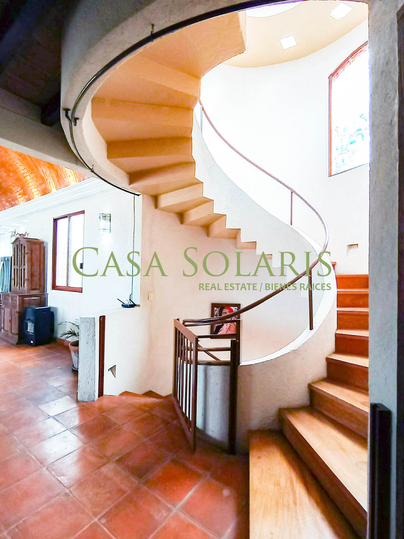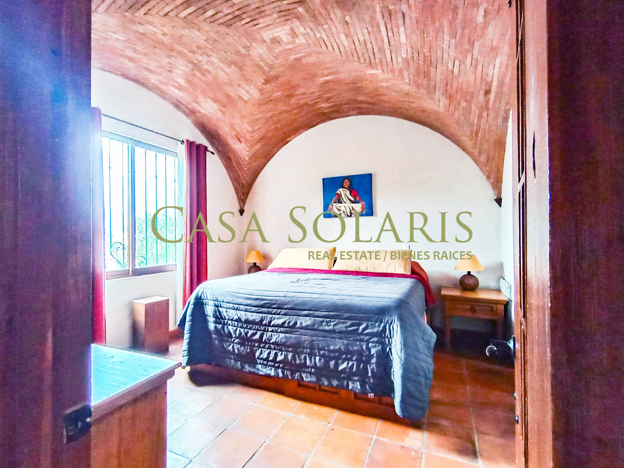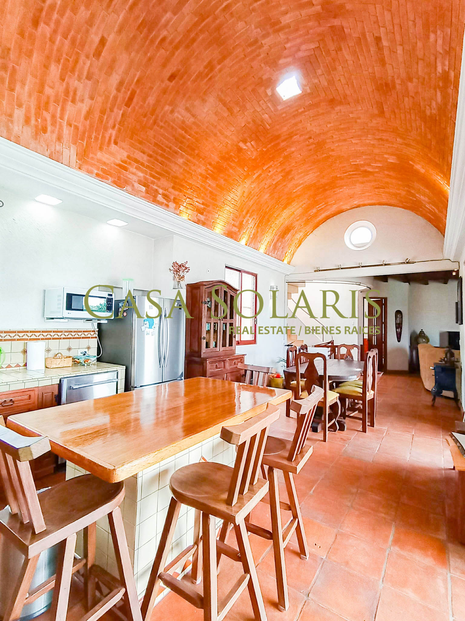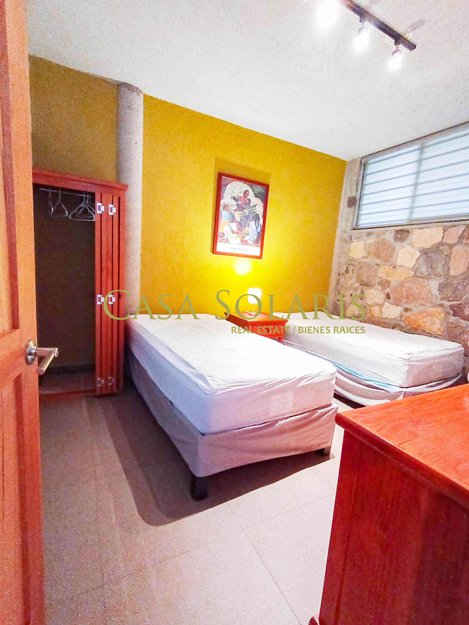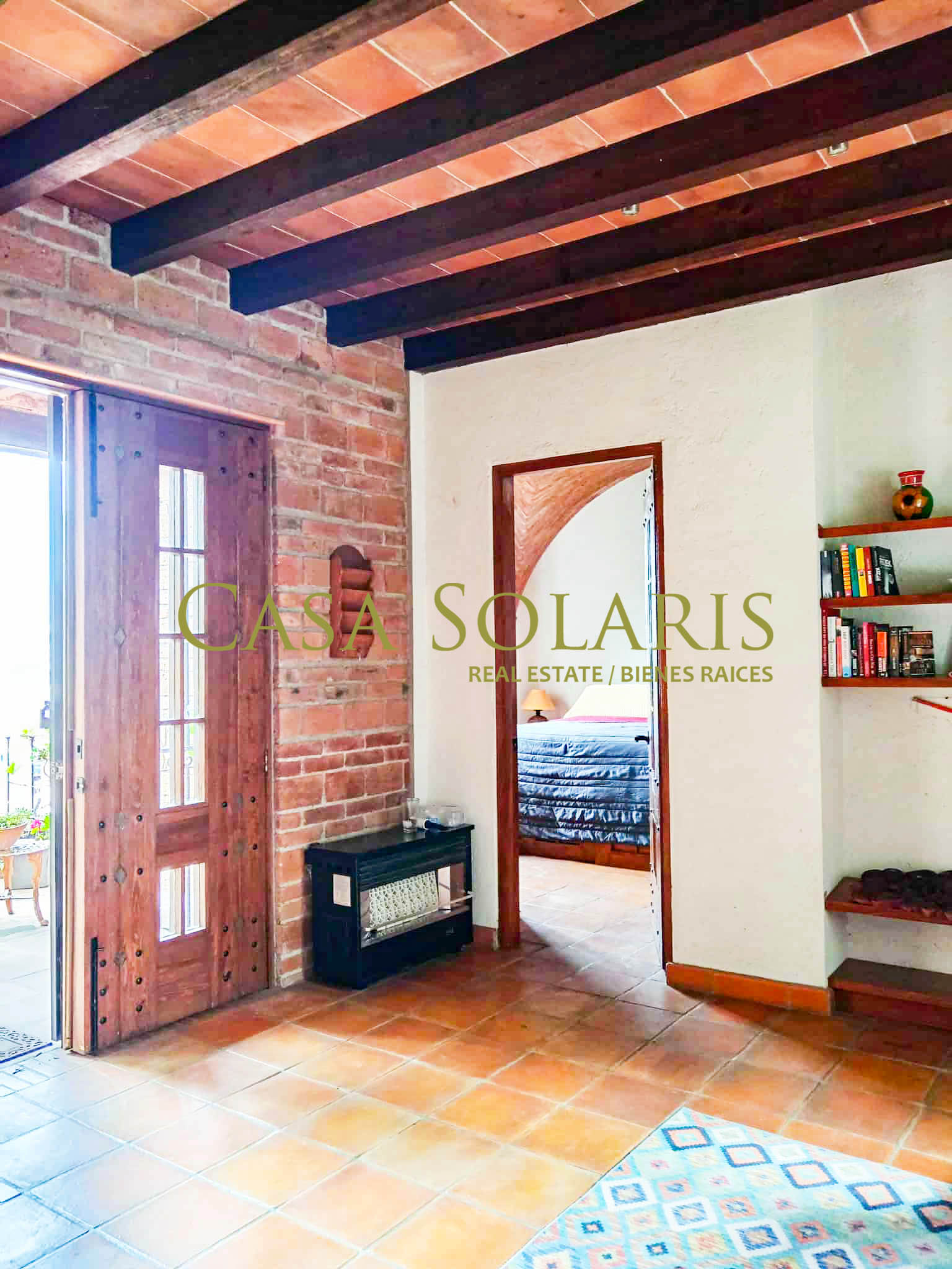Oportunidad de residencia amueblada y equipada, en venta ubicada en una parte alta donde se aprecia de forma increíble una vista del Centro de la ciudad de Guanajuato, con sus edificios emblemáticos: teatro Juárez, La Basílica, la Universidad, el mercado Hidalgo, el monumento al Pípila. Se ubica arriba del túnel noreste y para llegar a ella se disfruta el recorrido de un jardín con mucha vegetación y árboles. Cuenta con dos propiedades en el terreno, una casa y un departamento independiente. La casa con dos terrazas exteriores con vistas fabulosas tanto de día como de noche. Detalles de construcción la hacen muy especial como amplias bóvedas en una recámara y otra hermosa bóveda de cañón corrido que cubre el espacio de cocina y comedor, acabados rústicos, azulejo de talavera en los baños, y una bellísima escalera con piso de madera que conecta los pisos. Tiene una amplia cocina con mucha luz. Cuenta con dos recámaras en la primera planta, baño con centro de lavado, baño completo, terraza al frente y amplio jardín en la parte trasera. Se sube a la segunda planta donde se encuentra la alargada cocina para deleite de los que les agrada preparar comida, el comedor, un baño, La tercera planta es una terraza, donde se puede construir un departamento. El departamento se encuentra en la parte inferior de la casa, en una sola planta, con dos recámaras, cocina, sala y comedor, un baño y medio. Muy funcional, cómodo y equipado para tener una estadía muy confortable. La propiedad se emplea como negocio de bed&breakfast, por lo que también se puede seguir rentando con una buena ganancia, y tiene un historial muy rentable. Una gran oportunidad por su cercanía a la parte nuclear de la zona centro y por el estilo arquitectónico colonial moderna y la espectacular vista panorámica.
