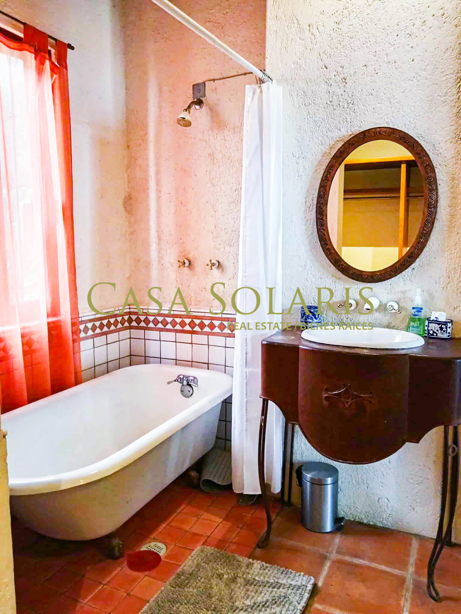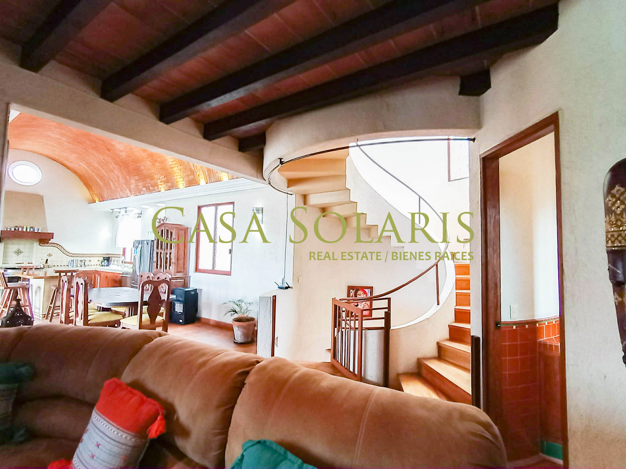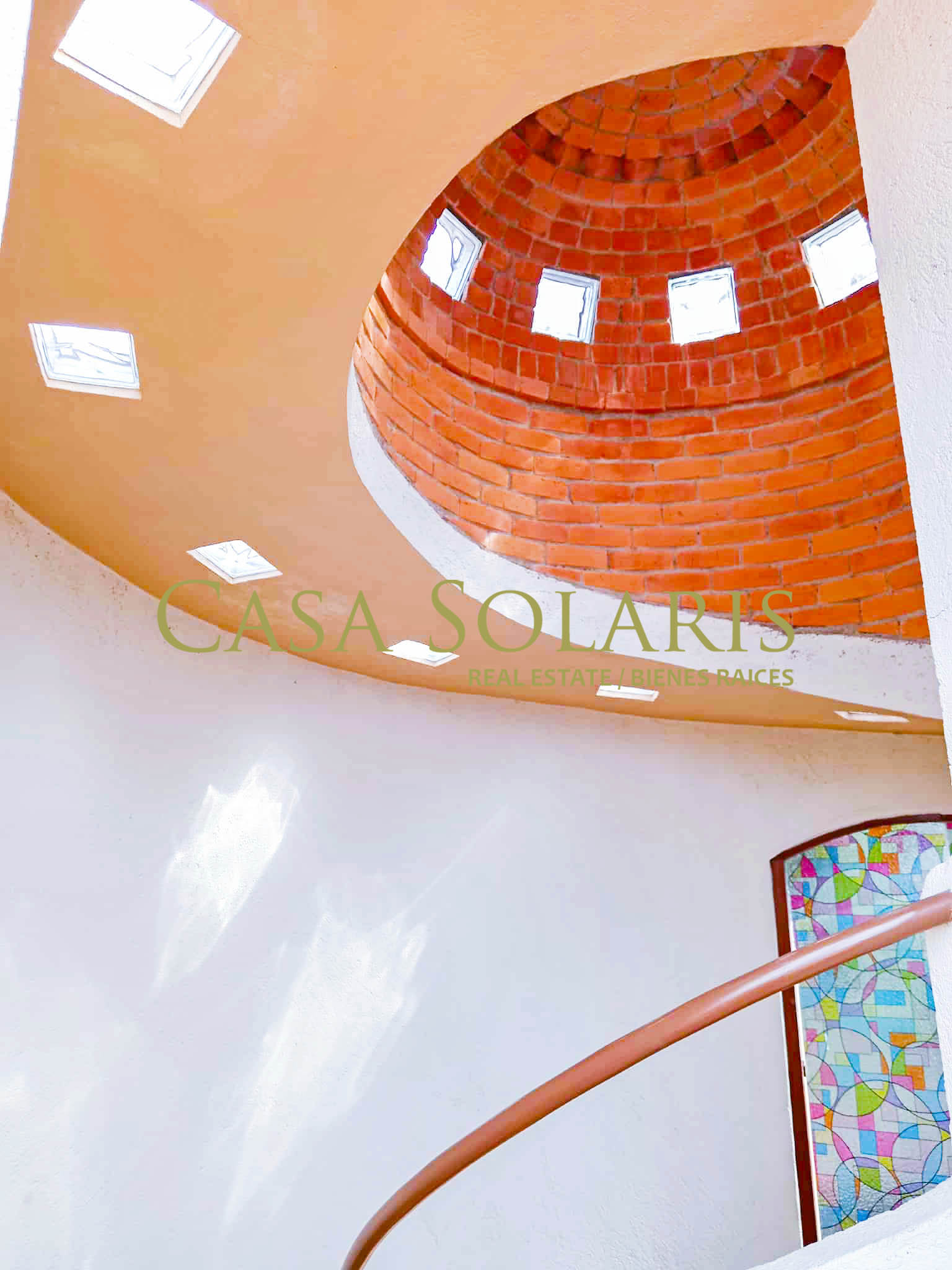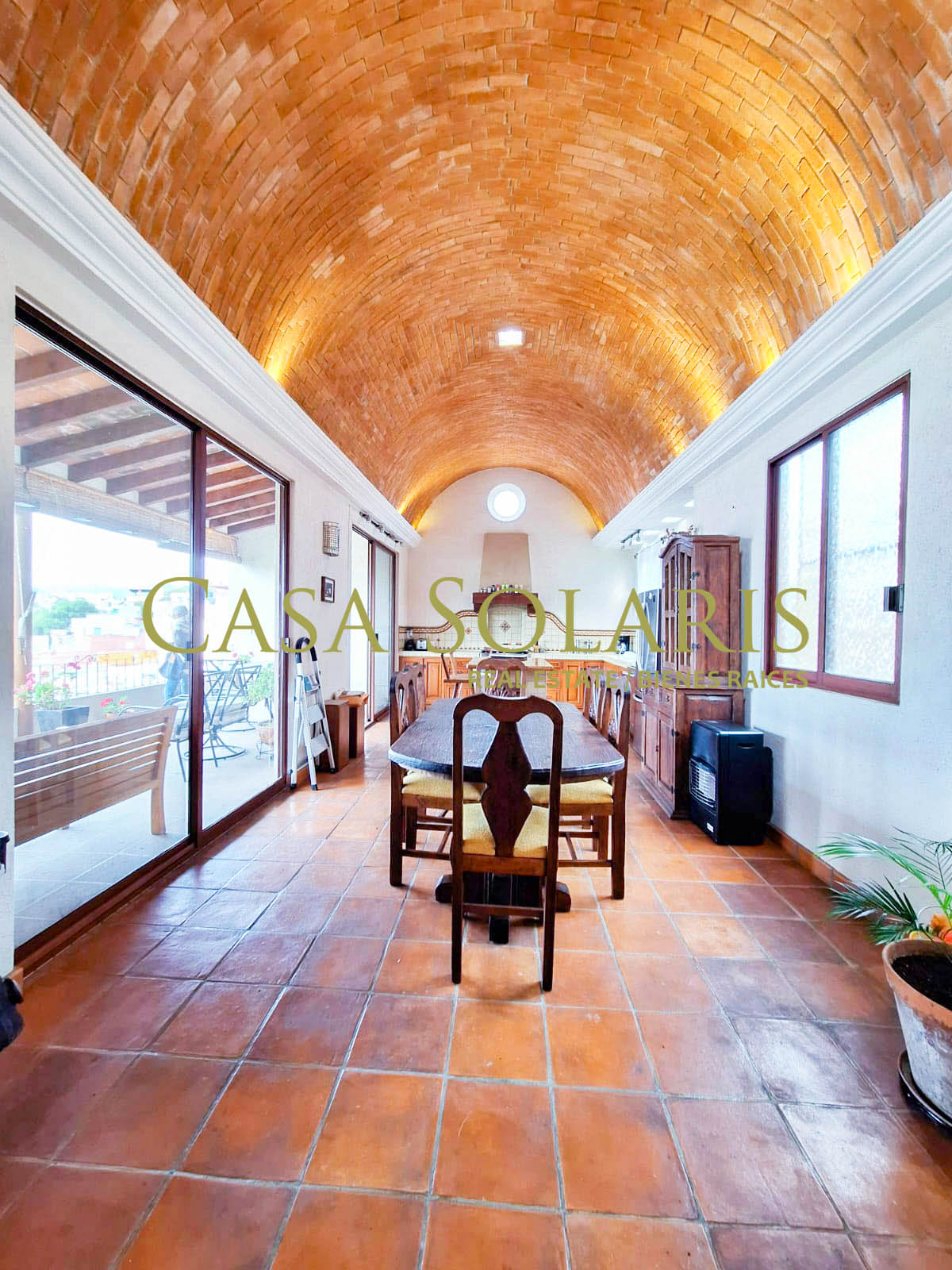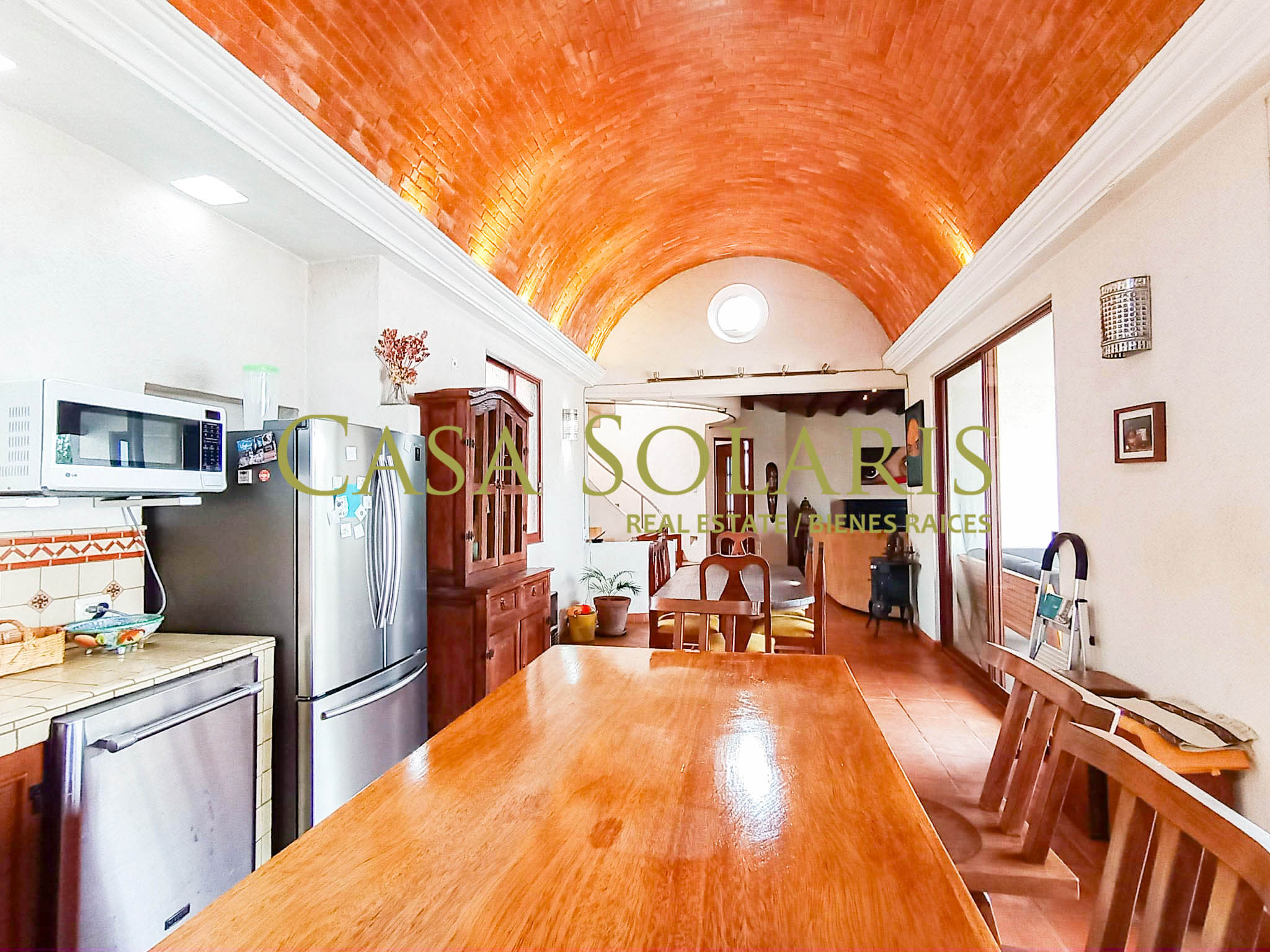 Oportunidad de residencia amueblada y equipada, en venta ubicada en una parte alta donde se aprecia de forma increíble una vista del Centro de la ciudad de Guanajuato, con sus edificios emblemáticos: teatro Juárez, La Basílica, la Universidad, el mercado Hidalgo, el monumento al Pípila. Se ubica arriba del túnel noreste y para llegar a ella se disfruta el recorrido de un jardín con mucha vegetación y árboles. Cuenta con dos propiedades en el terreno, una casa y un departamento independiente. La casa con dos terrazas exteriores con vistas fabulosas tanto de día como de noche. Detalles de construcción la hacen muy especial como amplias bóvedas en una recámara y otra hermosa bóveda de cañón corrido que cubre el espacio de cocina y comedor, acabados rústicos, azulejo de talavera en los baños, y una bellísima escalera con piso de madera que conecta los pisos. Tiene una amplia cocina con mucha luz. Cuenta con dos recámaras en la primera planta, baño con centro de lavado, baño completo, terraza al frente y amplio jardín en la parte trasera. Se sube a la segunda planta donde se encuentra la alargada cocina para deleite de los que les agrada preparar comida, el comedor, un baño, La tercera planta es una terraza, donde se puede construir un departamento. El departamento se encuentra en la parte inferior de la casa, en una sola planta, con dos recámaras, cocina, sala y comedor, un baño y medio. Muy funcional, cómodo y equipado para tener una estadía muy confortable. La propiedad se emplea como negocio de bed&breakfast, por lo que también se puede seguir rentando con una buena ganancia, y tiene un historial muy rentable. Una gran oportunidad por su cercanía a la parte nuclear de la zona centro y por el estilo arquitectónico colonial moderna y la espectacular vista panorámica.