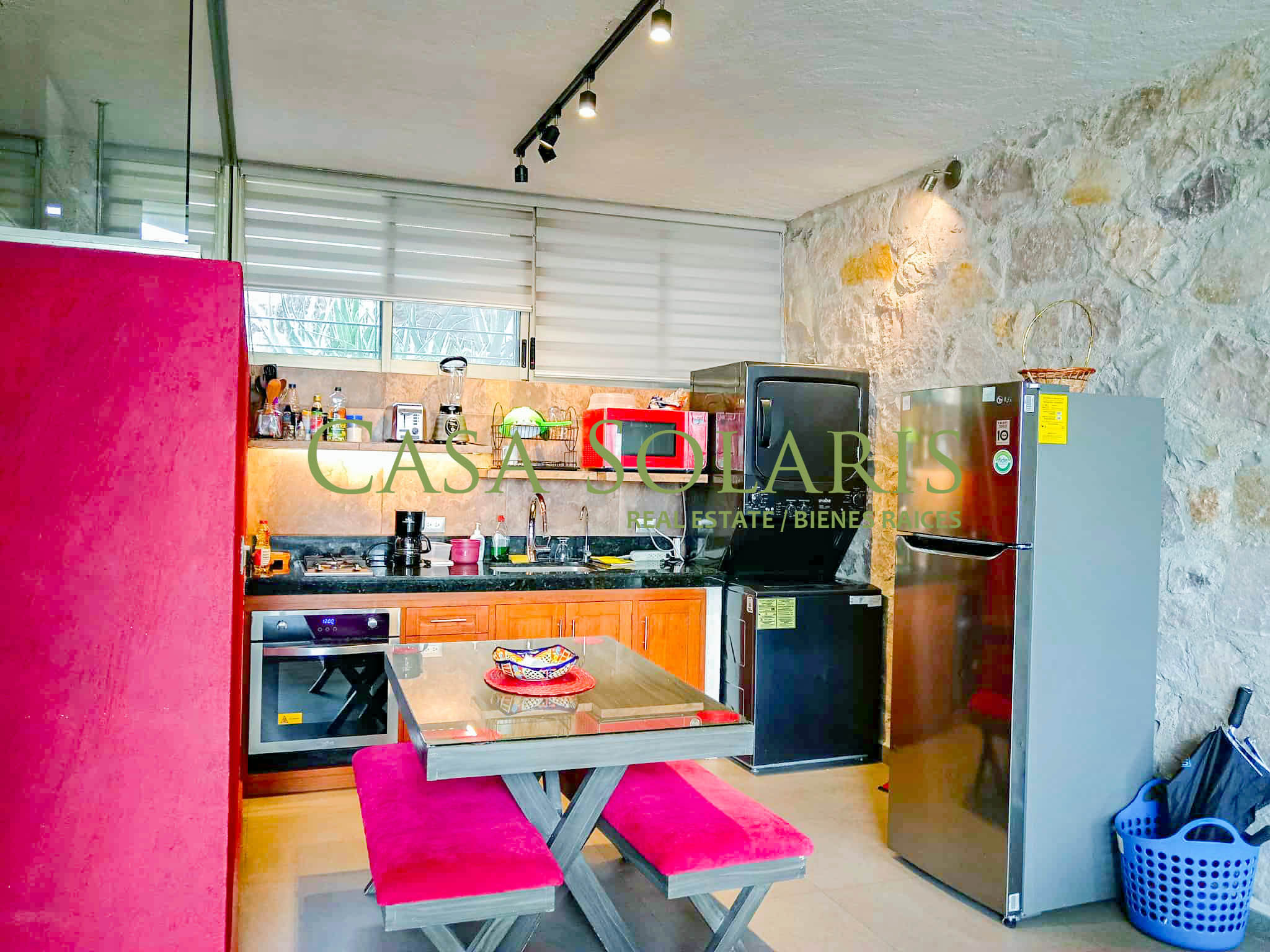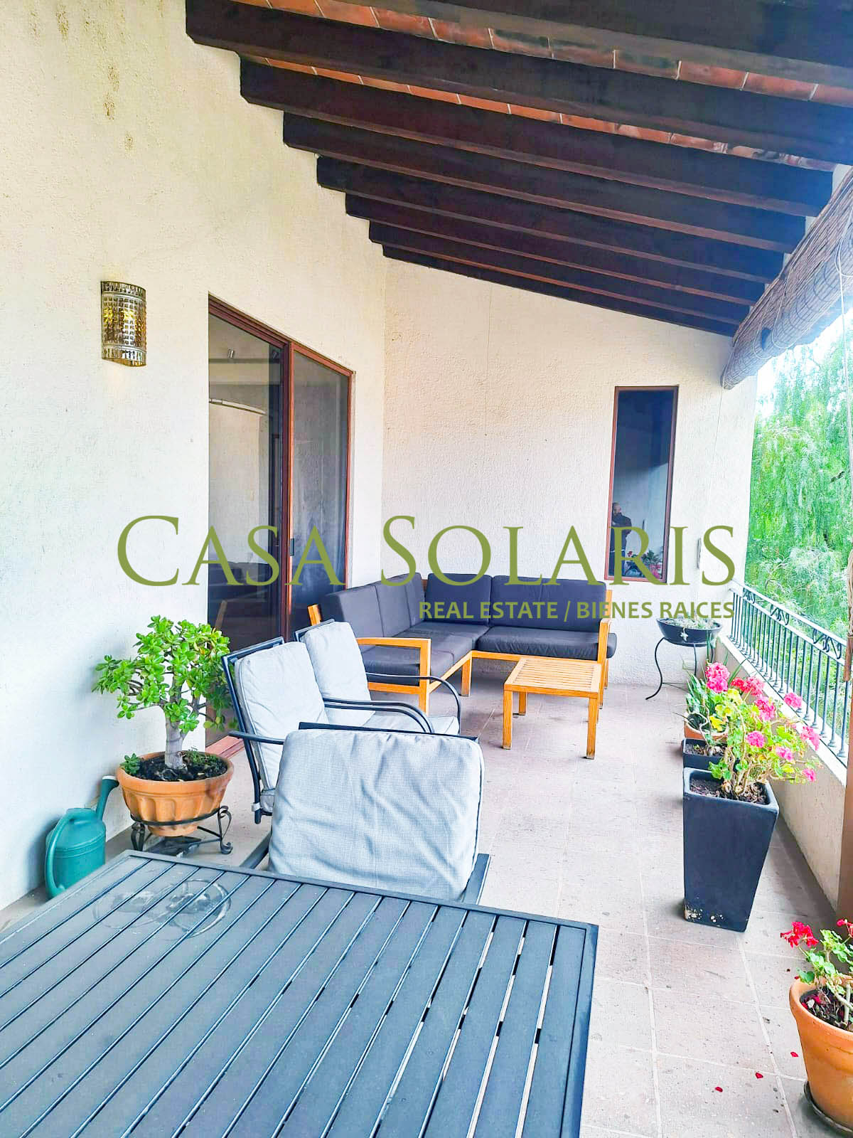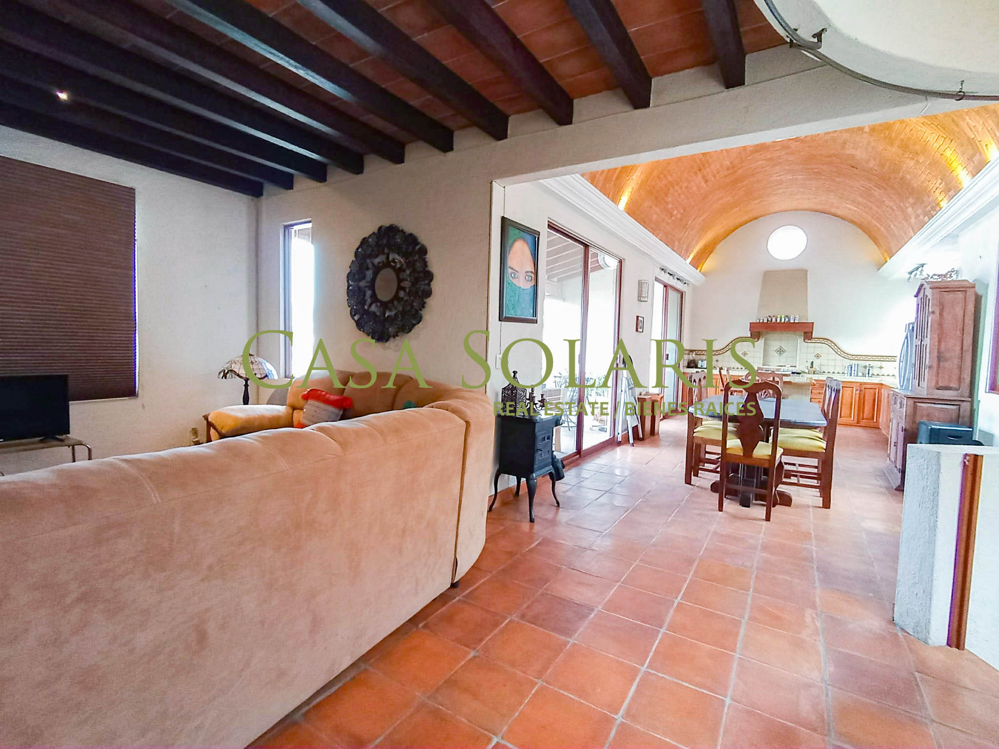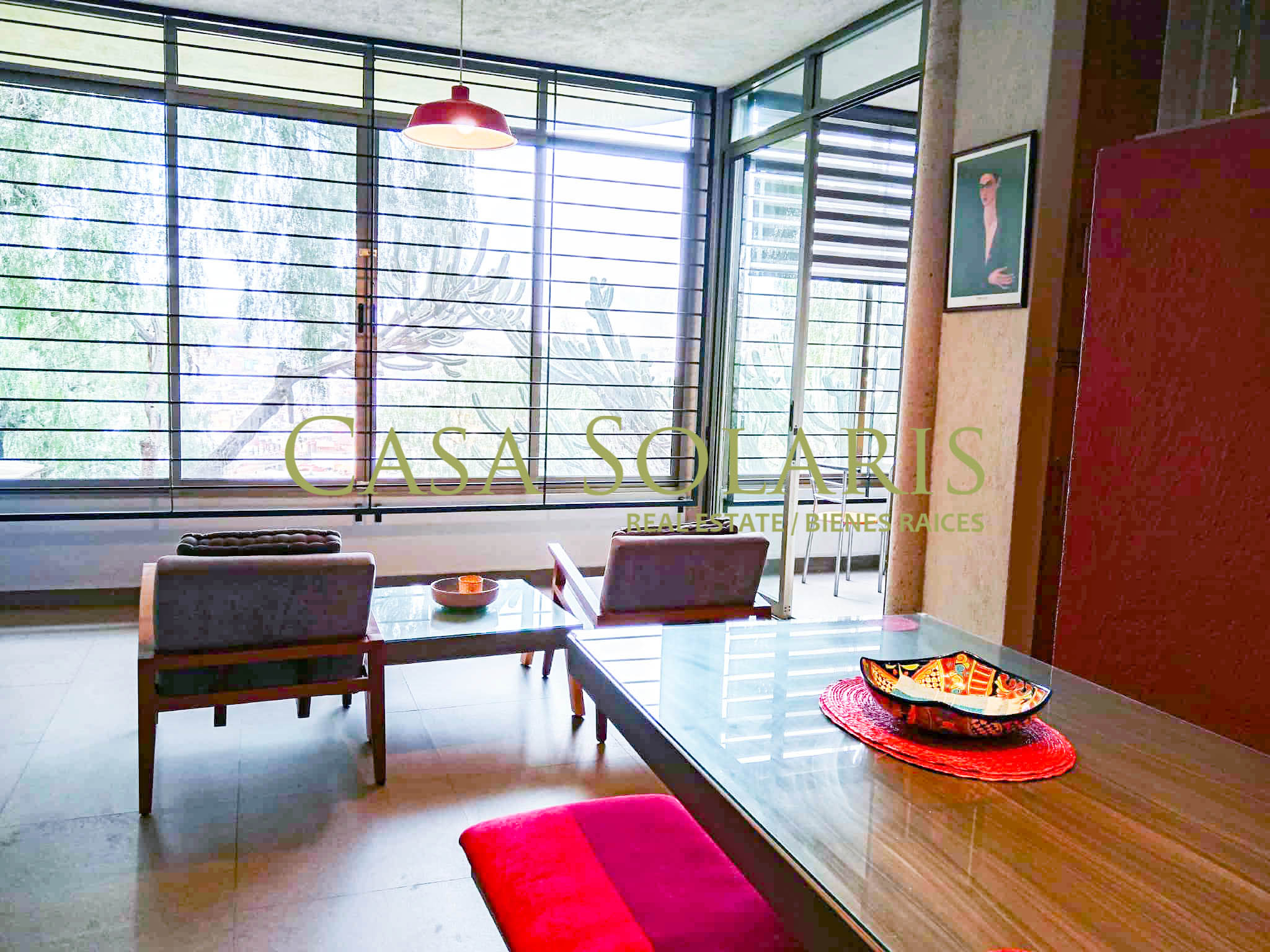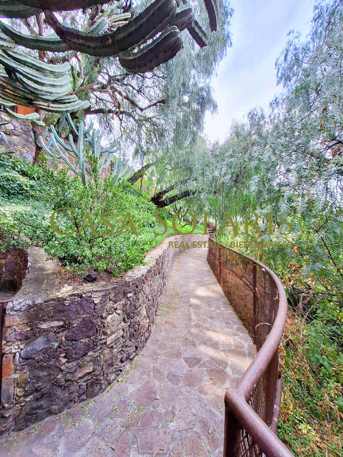 Oportunidad de residencia amueblada y equipada, en venta ubicada en una parte alta donde se aprecia de forma increíble una vista del Centro de la ciudad de Guanajuato, con sus edificios emblemáticos: teatro Juárez, La Basílica, la Universidad, el mercado Hidalgo, el monumento al Pípila. Se ubica arriba del túnel noreste y para llegar a ella se disfruta el recorrido de un jardín con mucha vegetación y árboles. Cuenta con dos propiedades en el terreno, una casa y un departamento independiente. La casa con dos terrazas exteriores con vistas fabulosas tanto de día como de noche. Detalles de construcción la hacen muy especial como amplias bóvedas en una recámara y otra hermosa bóveda de cañón corrido que cubre el espacio de cocina y comedor, acabados rústicos, azulejo de talavera en los baños, y una bellísima escalera con piso de madera que conecta los pisos. Tiene una amplia cocina con mucha luz. Cuenta con dos recámaras en la primera planta, baño con centro de lavado, baño completo, terraza al frente y amplio jardín en la parte trasera. Se sube a la segunda planta donde se encuentra la alargada cocina para deleite de los que les agrada preparar comida, el comedor, un baño, La tercera planta es una terraza, donde se puede construir un departamento. El departamento se encuentra en la parte inferior de la casa, en una sola planta, con dos recámaras, cocina, sala y comedor, un baño y medio. Muy funcional, cómodo y equipado para tener una estadía muy confortable. La propiedad se emplea como negocio de bed&breakfast, por lo que también se puede seguir rentando con una buena ganancia, y tiene un historial muy rentable. Una gran oportunidad por su cercanía a la parte nuclear de la zona centro y por el estilo arquitectónico colonial moderna y la espectacular vista panorámica.